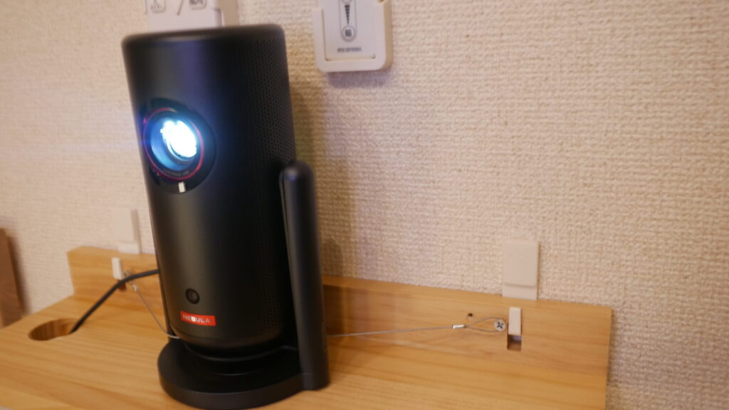三脚に置かなくても、壁に向けて置くだけでちょうどいい映像が映し出されます。