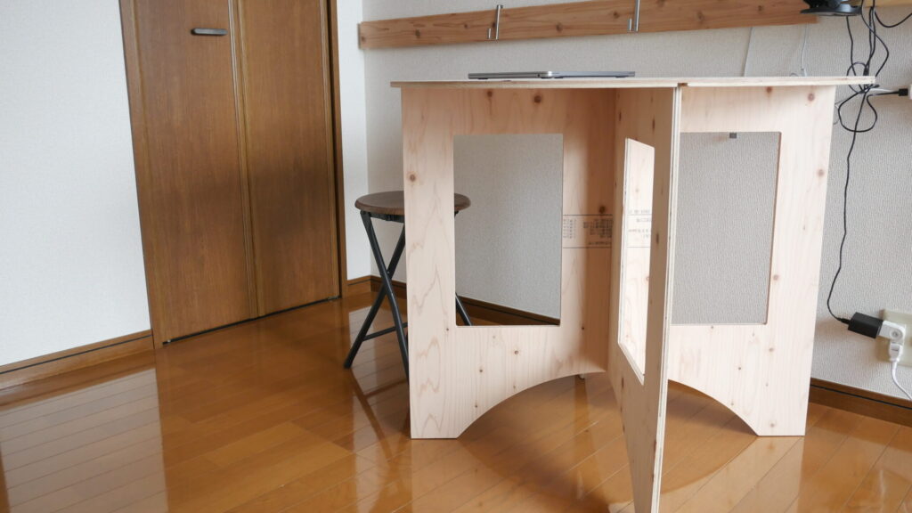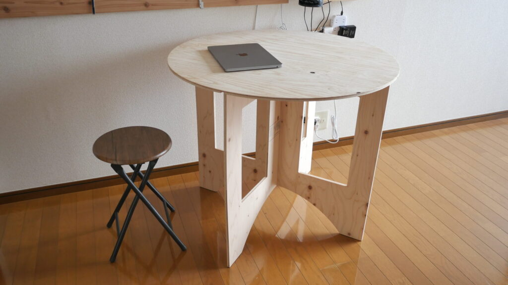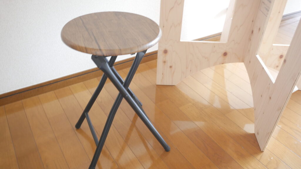 1つは、パソコン作業や食事で使う折りたたみのイス。